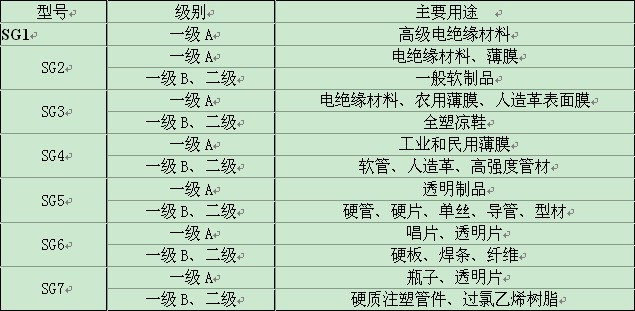 懸浮法PVC樹(shù)脂型號(hào)及主要用途 :